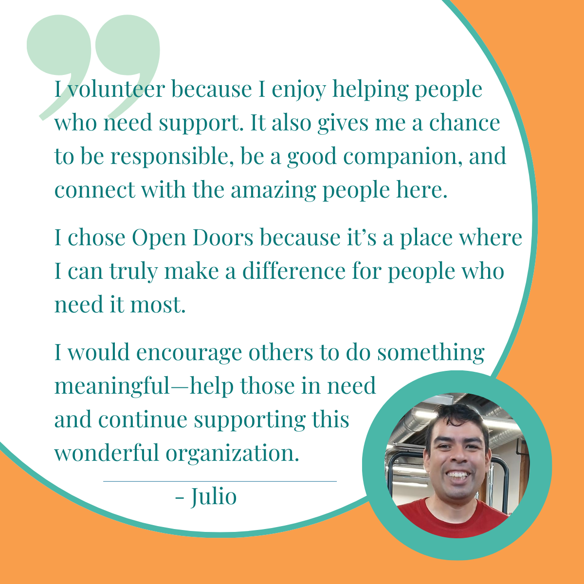 Congratulations to our Volunteer of the Month, Julio!
